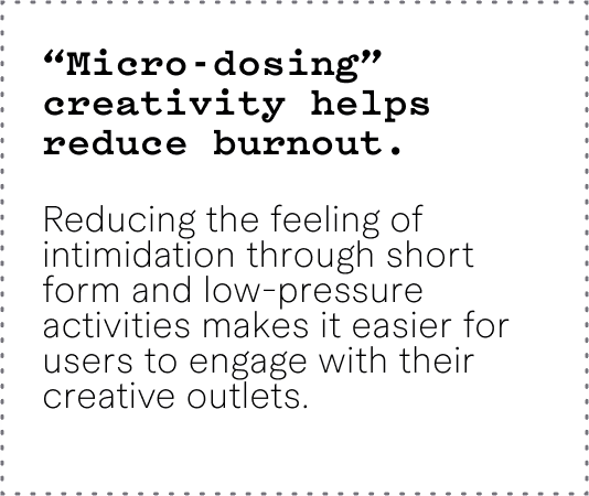 motivation through effortless and quick “micro-dosing” of creativity.